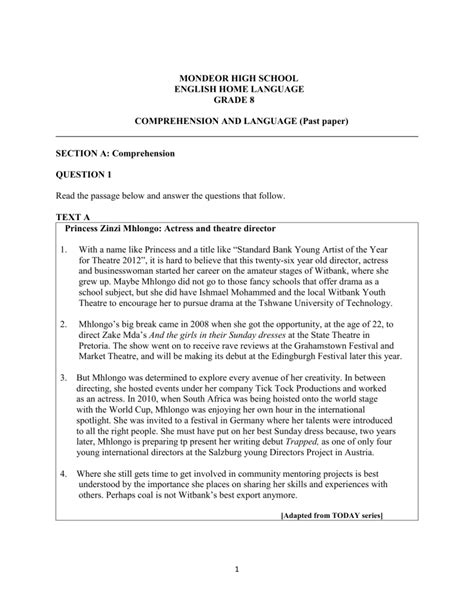 Download year 8 comprehension past papers Doc Library Genesis